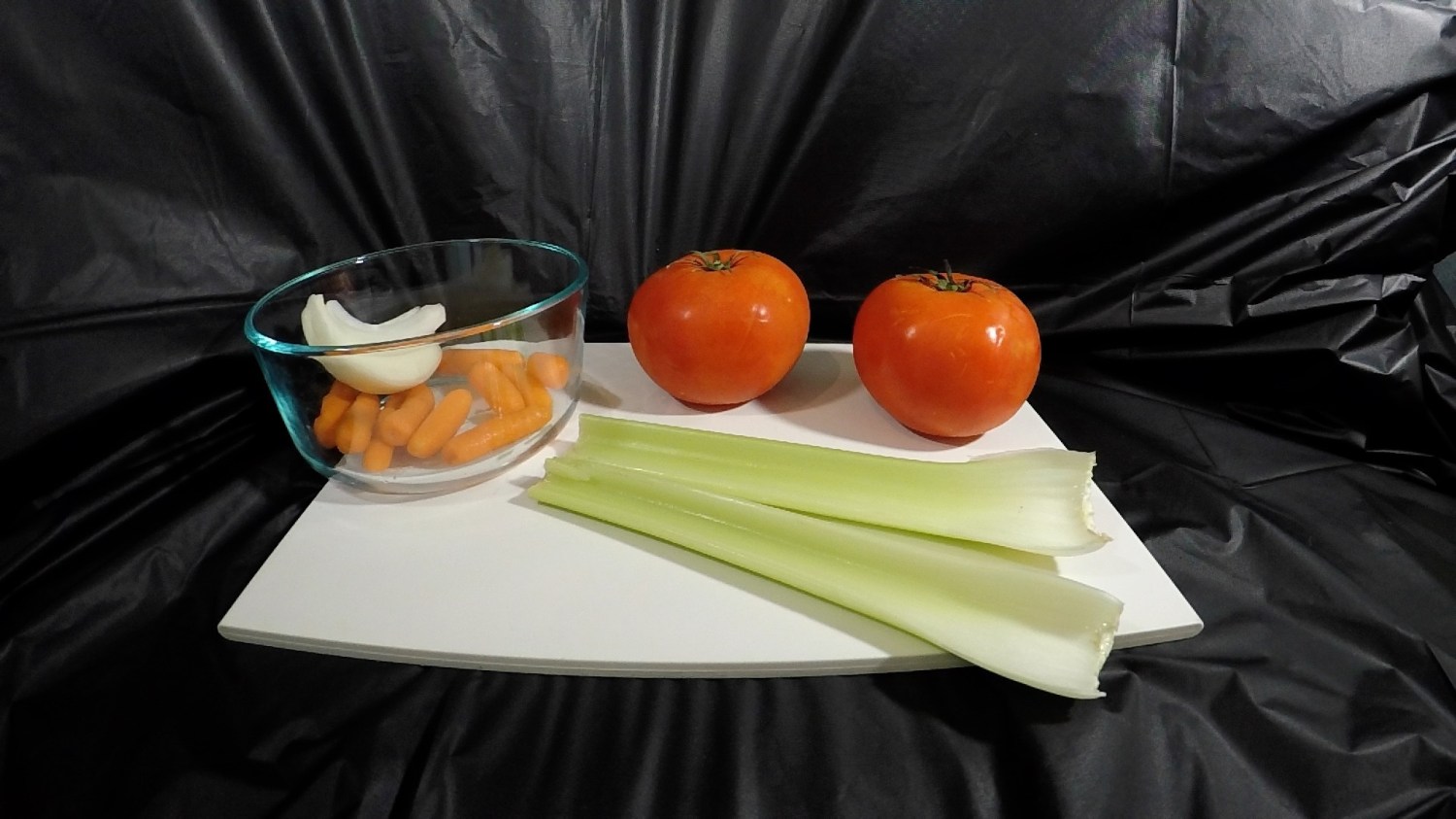 I used two large tomatoes, a handful of baby carrots, a small piece of onion, and a couple of celery stalks. Salt and pepper were added for taste at the end.